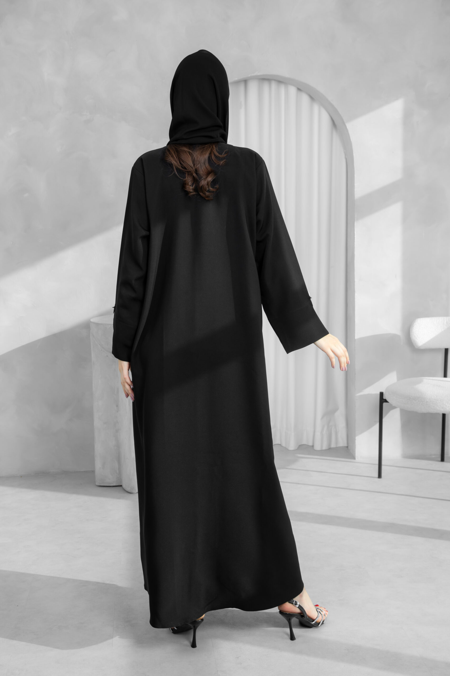 A timeless black abaya designed to elevate your everyday look with effortless elegance.