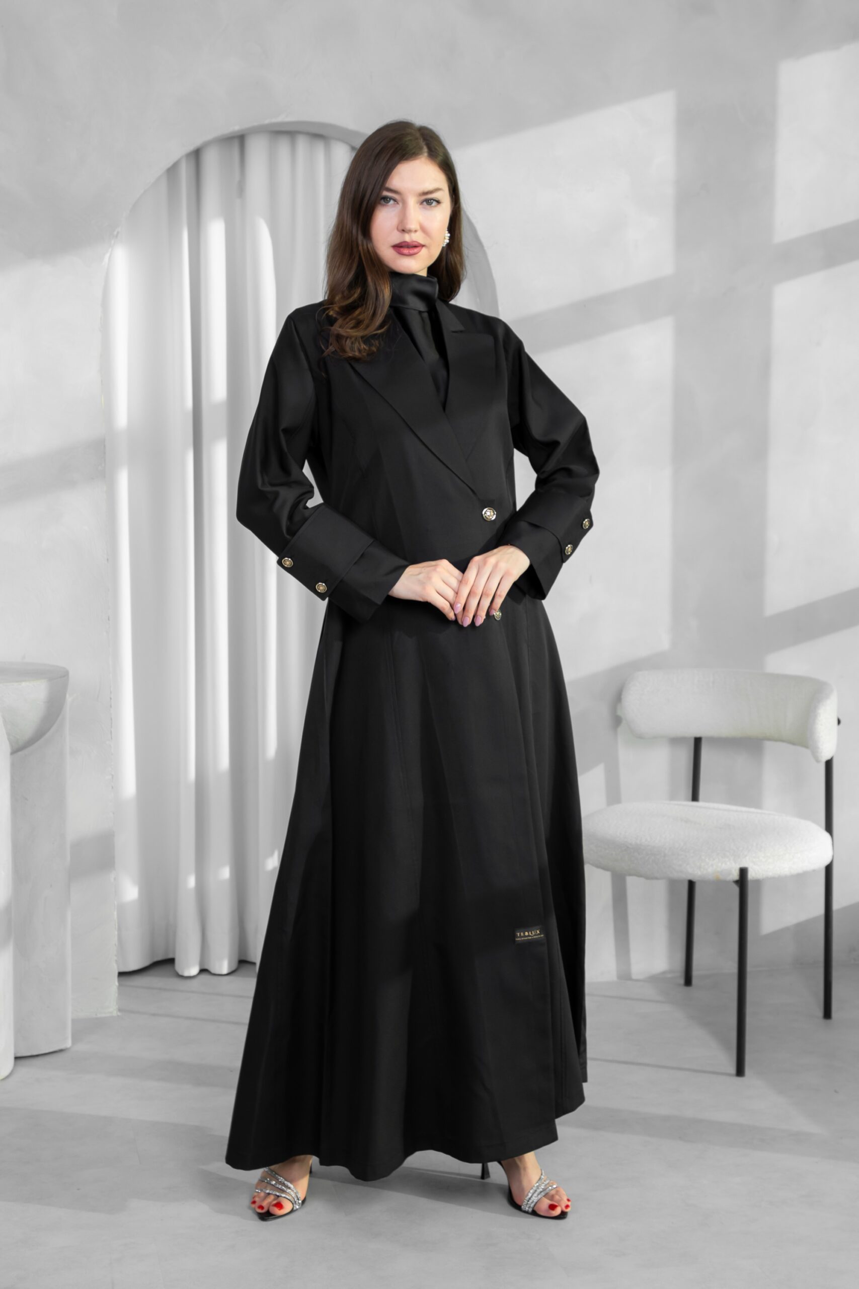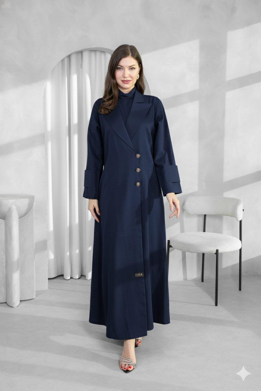 I bought the same design in black color, and it looked very classy. I will use it for my university and work. I really love the style and the way the golden buttons blend in with the black fabric, it makes it look like a classic design that anybody who wears an abaya should have it.