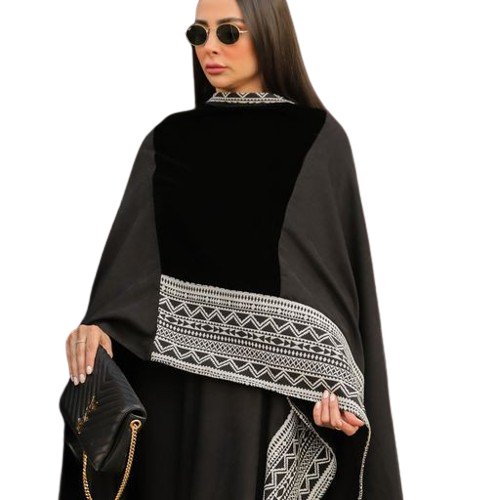 Radiate elegance with this chic abaya in timeless gray, featuring a beautifully textured black panel for a modern twist. The flowing silhouette is enhanced with intricate embroidery along the edges, adding a touch of sophistication to the design. Perfect for both formal events and everyday wear, this abaya exudes timeless charm and contemporary style. Complete your look with minimal accessories for effortless grace
