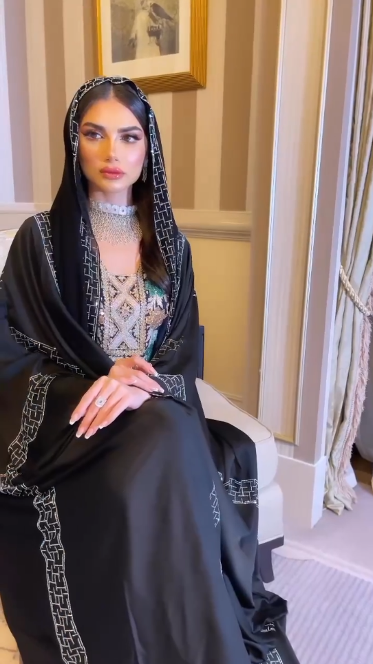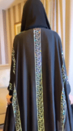 Experience timeless sophistication with this luxurious black silk abaya, adorned with intricate geometric embroidery along the edges for an elegant finish. The smooth, flowing silk fabric drapes effortlessly, while the vibrant floral details beneath add a modern and feminine contrast. Perfect for formal events or special occasions, this abaya redefines elegance by blending traditional craftsmanship with contemporary style.