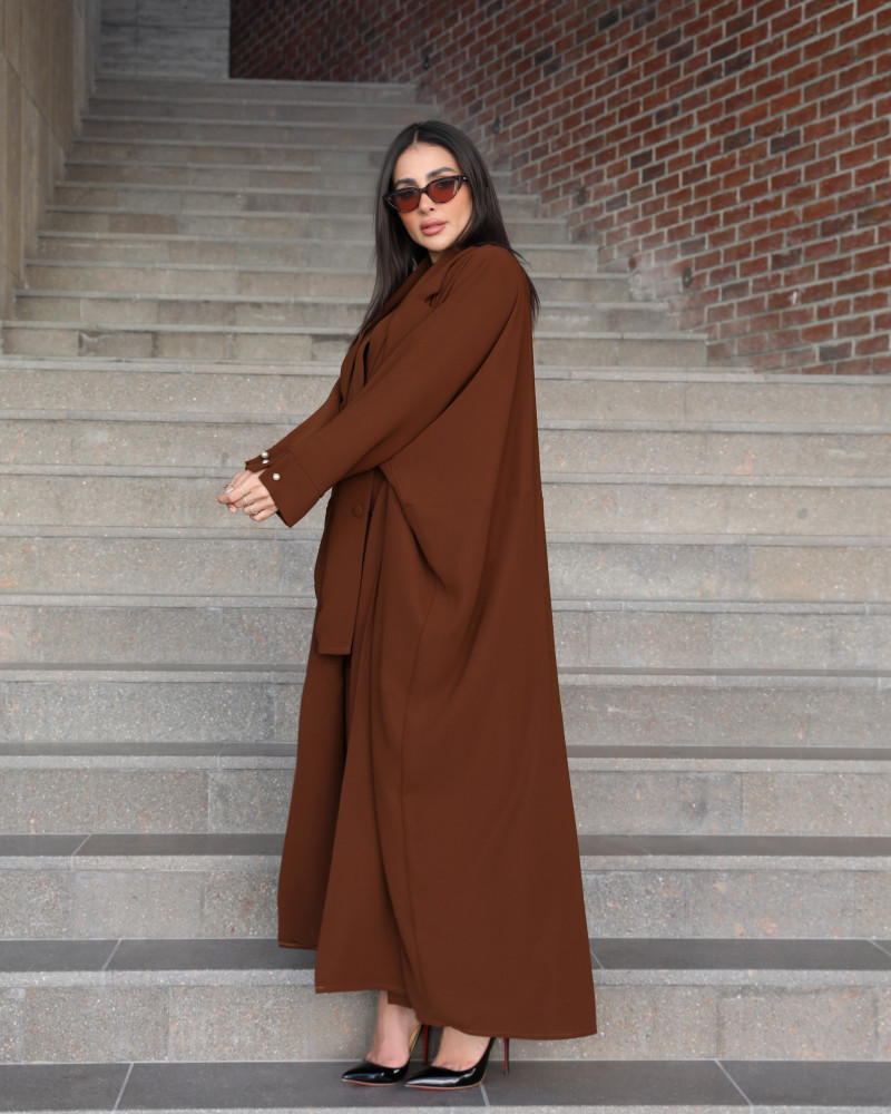 Exude effortless sophistication with this sleek brown abaya, designed with clean lines and a luxurious finish. The soft, flowing fabric ensures both comfort and elegance, while the minimalist design makes it versatile for both everyday wear and formal occasions. Pair it with your favorite accessories to create a timeless and chic look.